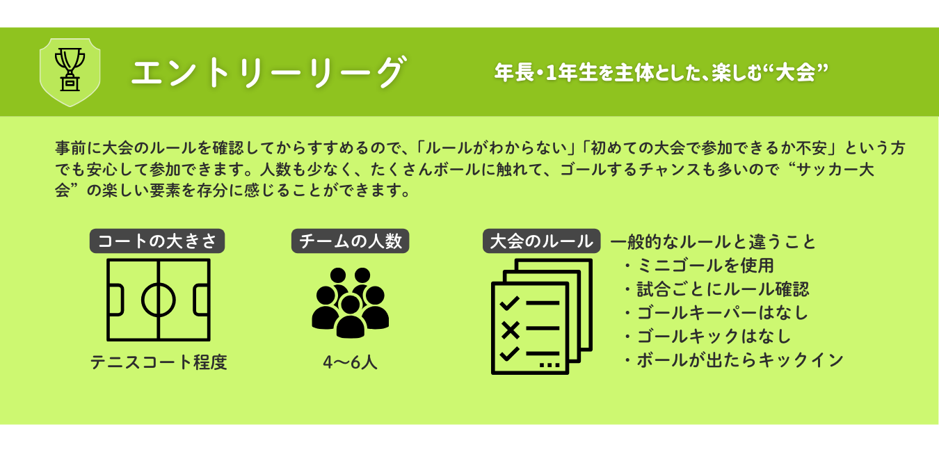 年長・1年生を主体とし、”楽しむ大会”をテーマとした ①エントリーリーグ