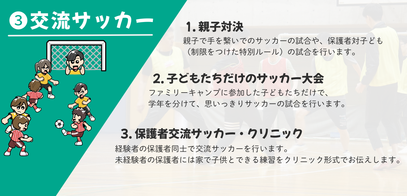 個人参加型の「保護者交流サッカー&クリニック」のみに参加をご希望の場合も、ファミリーキャンプと同じく、下記リンクよりお申込ください。